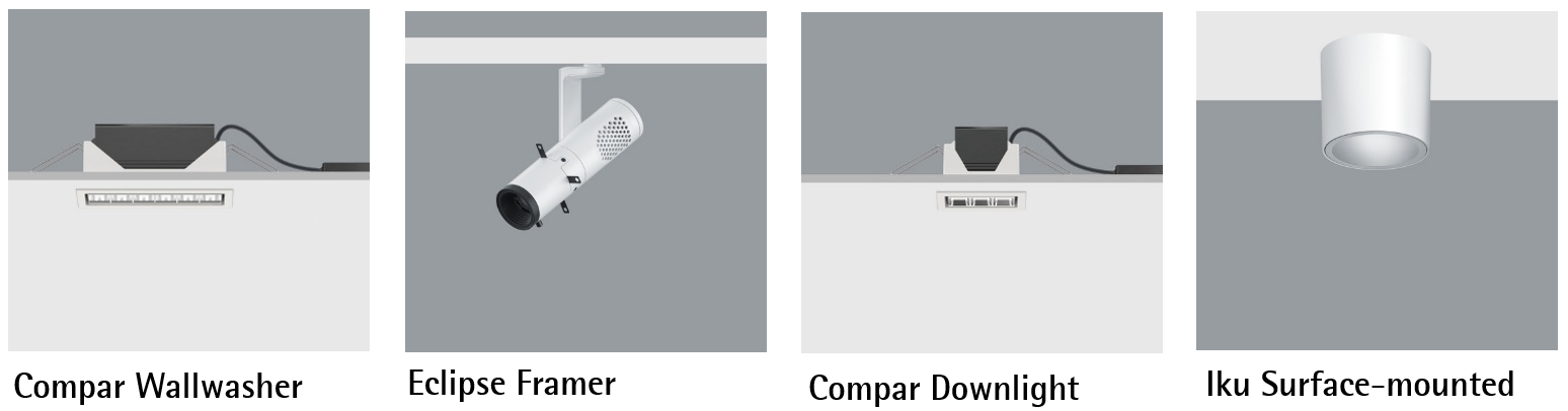 Compar Wallwasher | Eclipse Framer | Compar Downlight | Iku Surface-mounted