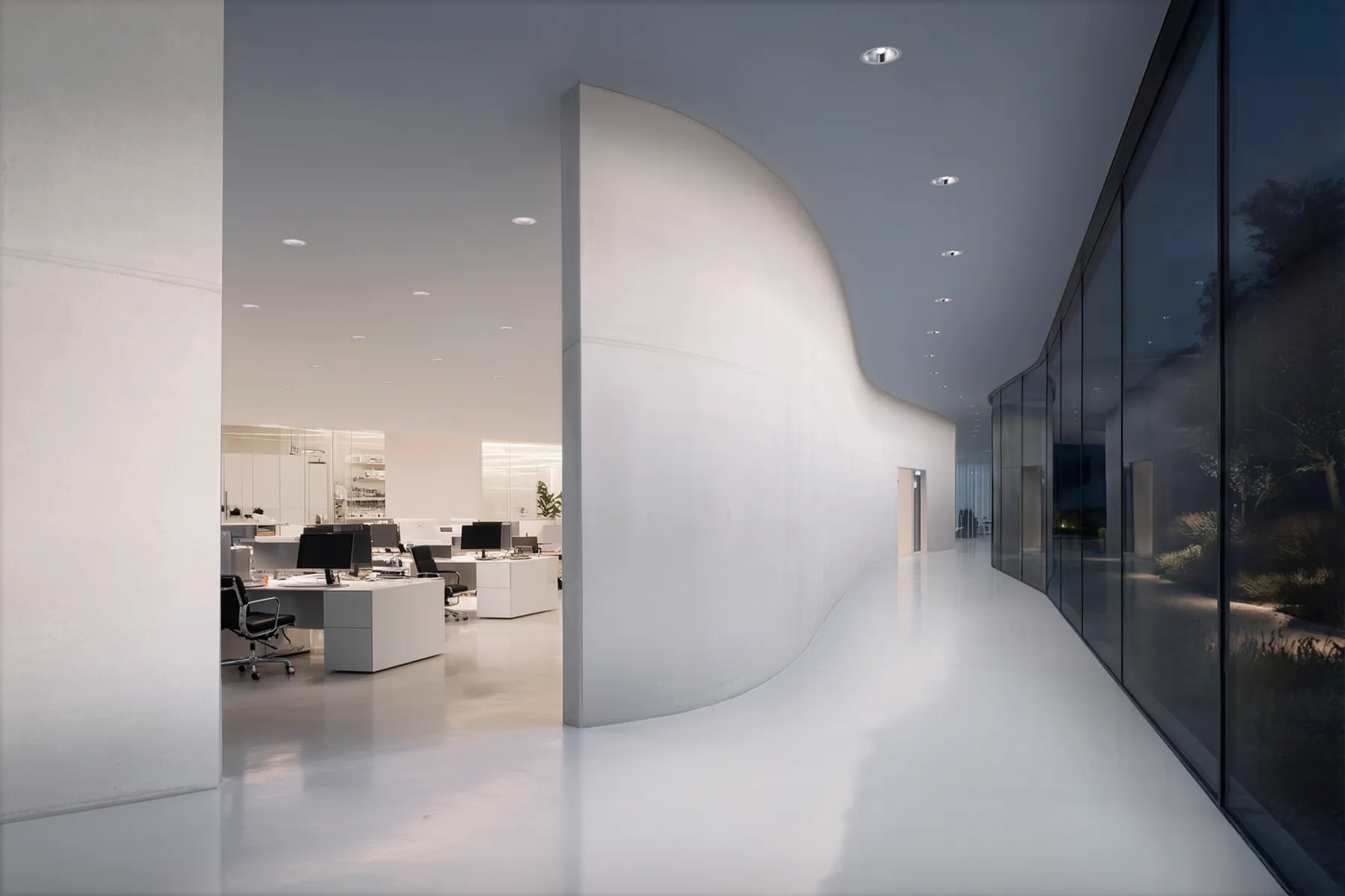 Quintessence 的 Downlight Wallwash 配光,可通过一台灯具同时实现环境照明与墙面洗亮,在控制灯具数量的同时,优化空间的亮度层次与整体构成。
