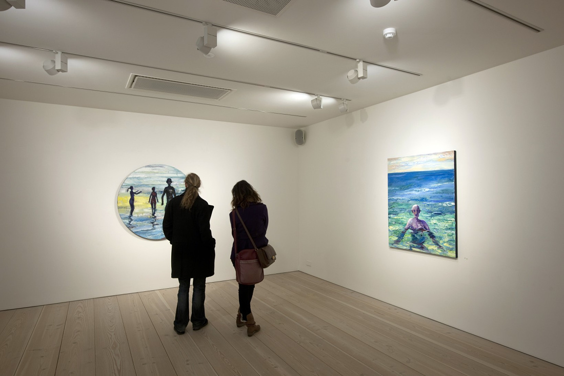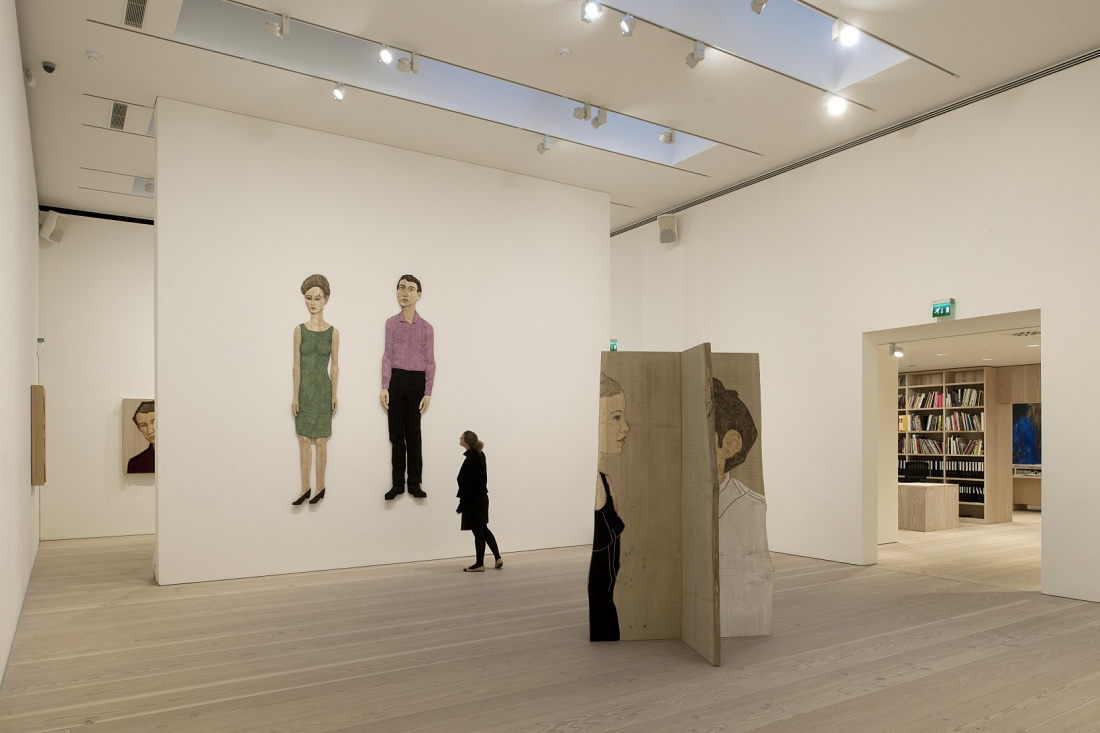 Als neutraler Hintergrund für die etwa zehn wechselnden Ausstellungen der Galerie pro Jahr folgt das Interieur der modernen Tradition des „white cube“. Gluckman Mayner entwarfen eine extrem reduzierte Detaillierung mit klaren, weißen Wandflächen und dem hellen Douglasienholz des dänischen Spezialisten Dinesen für Bodendielen und Einbaumöbel. Bei der Beleuchtung der Galerie ließen sich die Innenarchitekten von ERCO überzeugen, für energieeffizientes Licht in Museumsqualität von vornherein ausschließlich auf zukunftssichere LED-Technik zu setzen. Das Lichtkonzept in der Galerie nutzt intensiv den raumdefinierenden Effekt von Wandflutung, beispielsweise in den Verkehrszonen oder für die Rückwand des Rezeptionsbereichs. Die kuratorischen Anforderungen in den Ausstellungsräumen lassen sich effizient und flexibel mit Optec LED-Strahlern an 3-Phasen-Stromschienen erfüllen: Dank der wechselbaren Spherolitlinsen ist nicht nur die Anordnung und Ausrichtung der Strahler, sondern auch ihre Abstrahlcharakteristik schnell und einfach zu verändern.