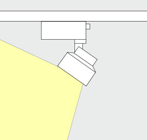 Pollux spotlights effectively accentuate artwork, products and architectural details. The ideal angle of tilt (α) for these applications is around 30° to model the object without distorting the effect as a result of excessive shadowing. This set-up also prevents shadows cast by the observer.