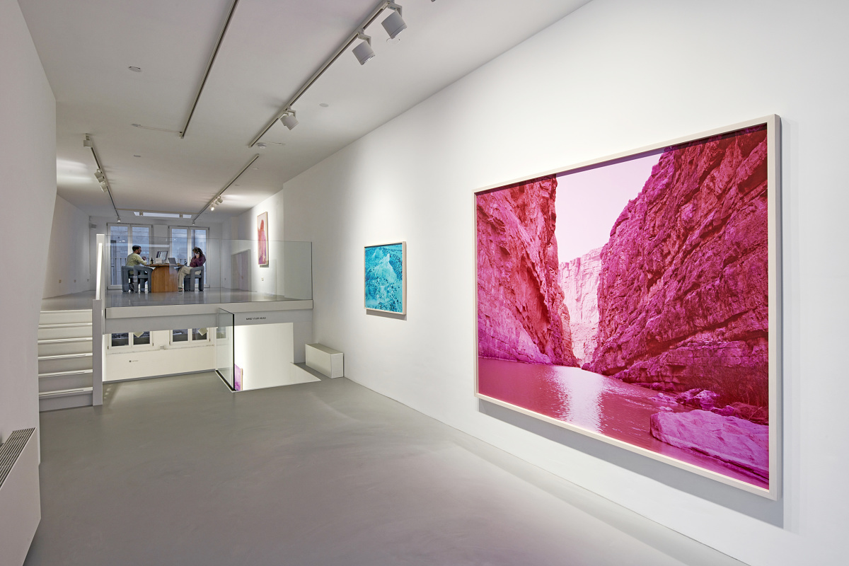The flexible lighting concept with Parscan InTrack spotlights, wallwashers and track was developed by the gallery owners in collaboration with the Dutch ERCO subsidiary (view of the exhibition: Earth Uprising, David Benjamin Sherry).