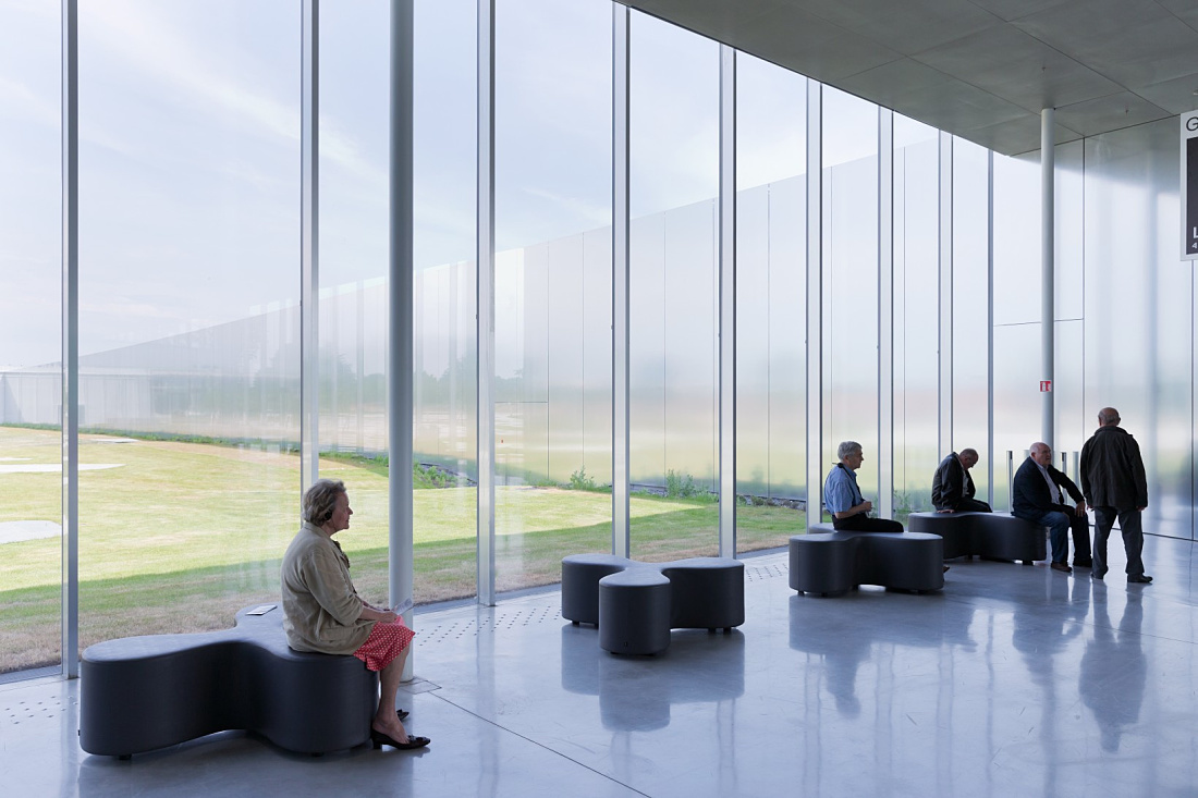 Whereas comparable museum buildings tend to attract attention with solitary, monumental architecture to upgrade a place (Guggenheim Museum), the new Louvre presents itself as unobtrusive and open. Suffused with light, the steel, glass and concrete structure on the two-hectare site sensitively establishes a dialogue with its surroundings. Designed by Japanese architectural firm Sanaa in cooperation with New York studio Imrey Culper, the building sits on a disused coal mine. The single-storey building harmoniously integrates with the park landscaped by Catherine Mosbach. Even the entrance, a transparent glass cube, demonstrates closeness and openness which the museum wants to communicate to the people. The cladding of anodised brushed aluminium used for the remaining sections dimly reflects the surroundings.