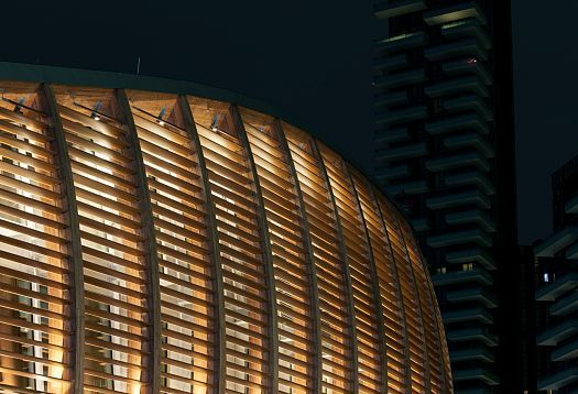 When lighting designers and architects work closely together, the result are structures that stand as emblems of excellence in spatial and urban design. The multifunctional pavilion, conceived by the Italian architect and designer Michele De Lucchi for UniCredit Bank and taking shape in close collaboration with the lighting experts of Gruppo C14 in Milan, today shines like a monumental lantern, lit from within. Illuminated with ERCO lighting tools, the structure’s organic design made of wood and glass almost instantly evolved into a major attraction, encapsulating the poetic heart of Milan’s new, prestigious Porta Nuova district.
