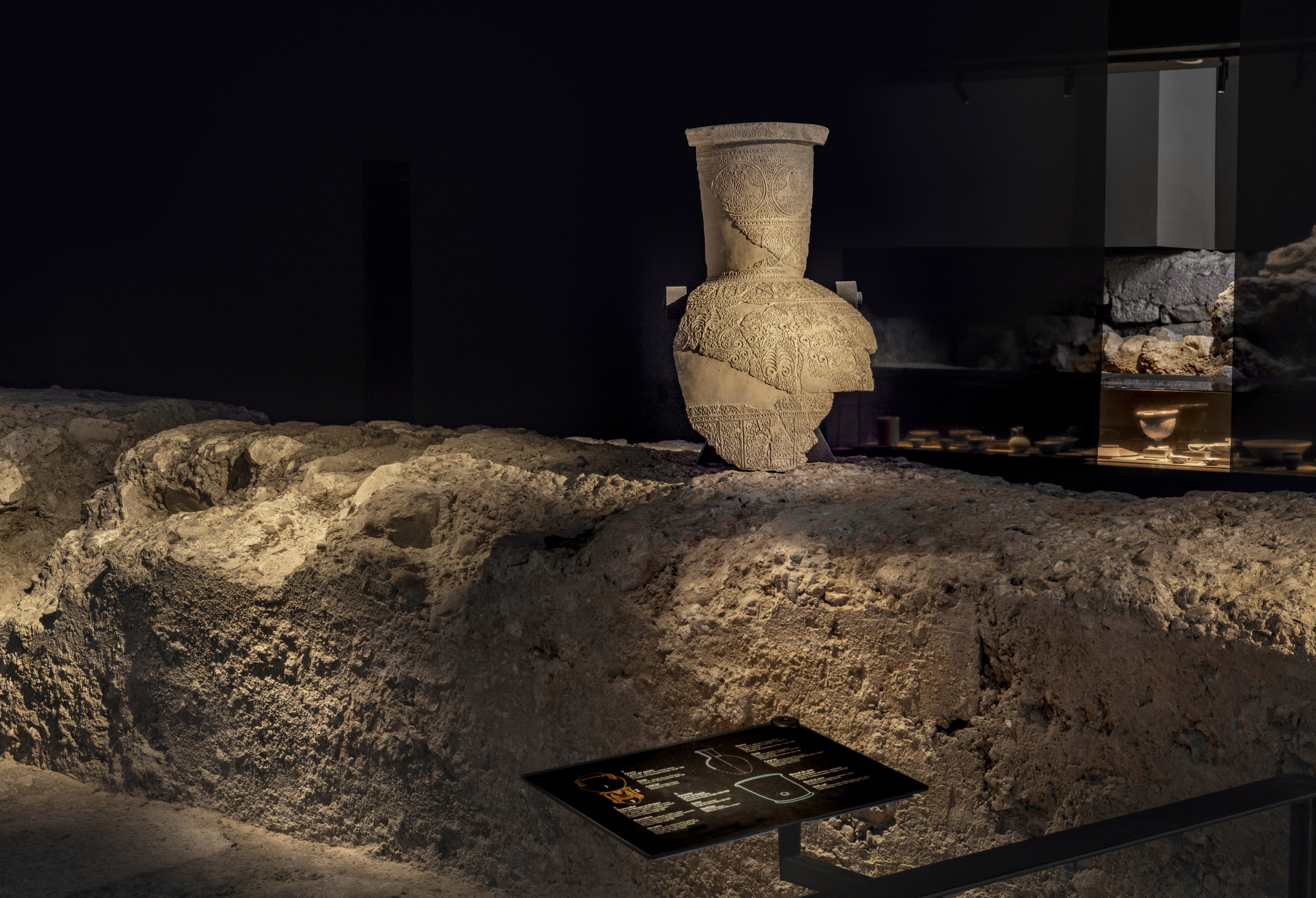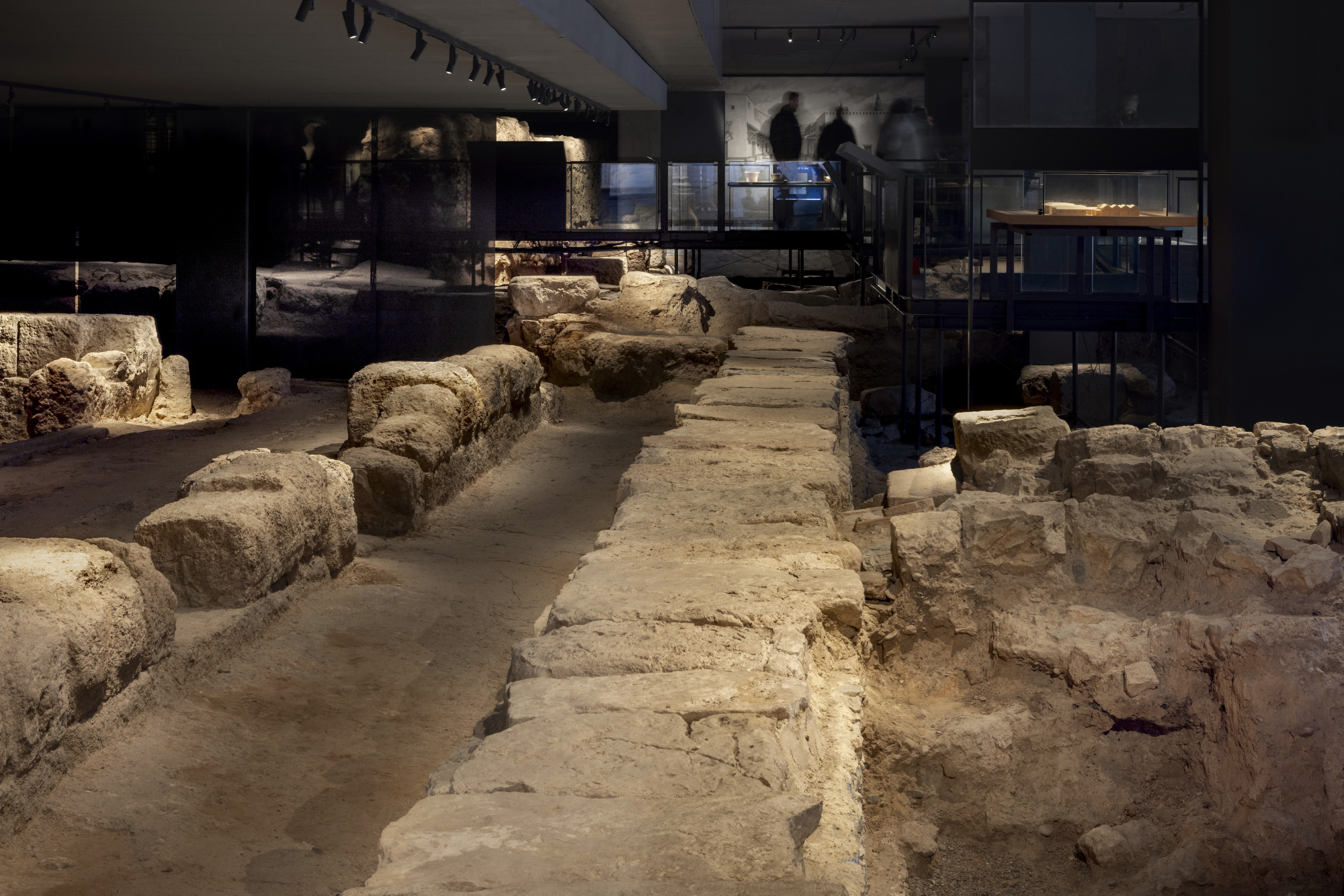 Por motivos perceptivos y de conservación, los niveles de iluminación se mantienen deliberadamente contenidos. Esta decisión facilita la adaptación progresiva de la visión a medida que el visitante avanza, evita contrastes abruptos y respeta la fragilidad de los materiales arqueológicos.