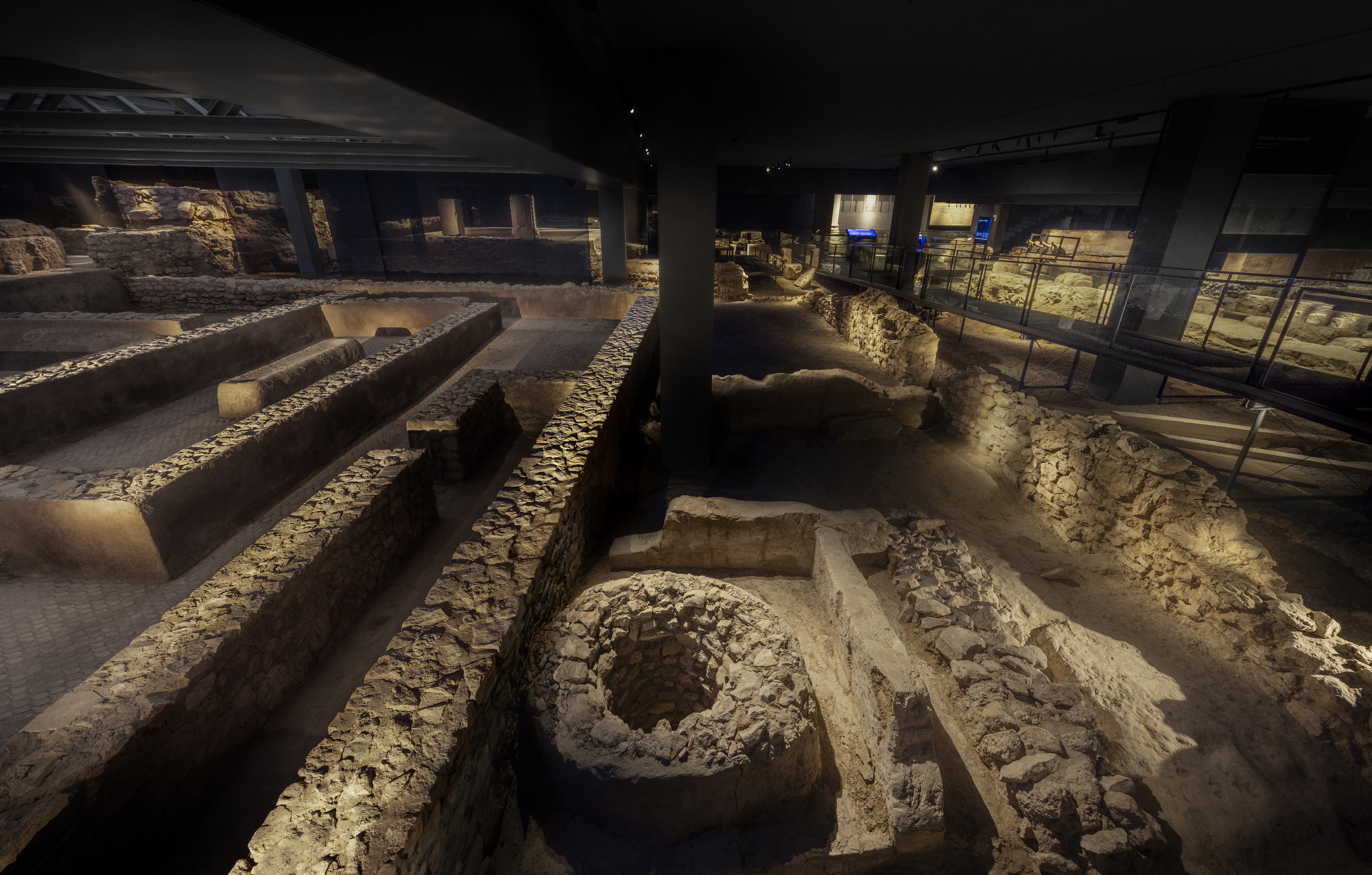 Con más de 2.500 m² de superficie expositiva, el Museo Arqueológico de la Almoina integra los restos arqueológicos en una arquitectura contemporánea que permite comprender la evolución urbana de la ciudad, desde la Valentia romana hasta la València medieval. En este espacio amplio y continuo, la iluminación se concibe como una herramienta narrativa fundamental: estructura el relato, jerarquiza los vestigios y articula transiciones entre áreas. Esto permite comprender la superposición de épocas y propicia una lectura coherente del conjunto sin necesidad de recursos expositivos adicionales.