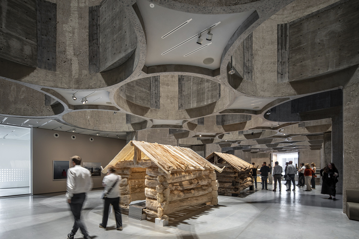 Desde los murales hasta la cabaña de madera expuesta, los proyectores Parscan acentúan los objetos en exposición.