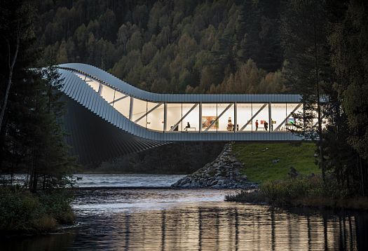 Met een kunstzinnig verdraaid galeriegebouw slaan de architecten van BIG de brug over de rivier de Randselva in het Noorse sculpturenpark Kistefos. De met geëloxeerde aluminiumplaat ommantelde constructie maakt zelf de indruk van een sculptuur. Binnen omvat „The Twist“ tentoonstellingszones voor wisselende kunstwerken die met Parscan spots en lens-wallwashers van ERCO hedendaags en flexibel worden verlicht.