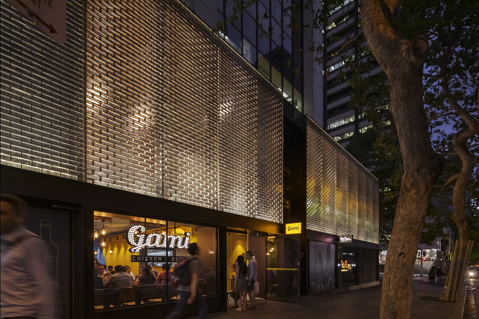 De modernisering van een oudere straatruimte is een uitdaging. Als aanvulling op de omringende zandsteengebouwen ontwierp architect Woods Bagot een schitterende, handgegoten wand van Venetiaanse glasblokken om de straatfaçade van deze in 1972 opgerichte hoogbouw in Sydney nieuwe allure te verlenen. Bij daglicht dringt het licht de foyer binnen, terwijl het gebouw na het intreden van de duisternis oplicht - dankzij ERCO Lightgap plafondinbouwarmaturen, waarvan het licht de tegels van boven en onder raakt.